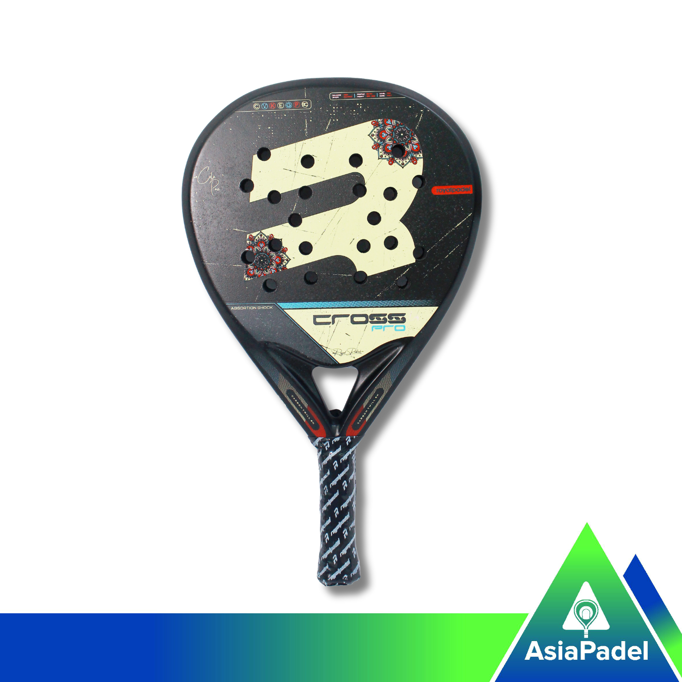 Royal Padel Cross Pro raket padel premium yang dirancang untuk pemain yang menginginkan kombinasi power, kontrol, dan stabilitas. Raket ini hadir dengan desain artistik mandala yang ikonik di bagian face, memberikan tampilan unik sekaligus rasa profesional. Dengan bentuk hybrid, raket ini menawarkan tenaga ekstra saat smash, namun tetap mudah dikendalikan pada rally panjang. Teknologi Absorption Shock membantu menurunkan getaran, menjadikannya nyaman dipakai untuk pemain intermediate hingga advanced. Raket ini untuk pemain yang agresif, sering bermain di depan net, namun tetap membutuhkan respons yang lembut dan stabil saat defense.