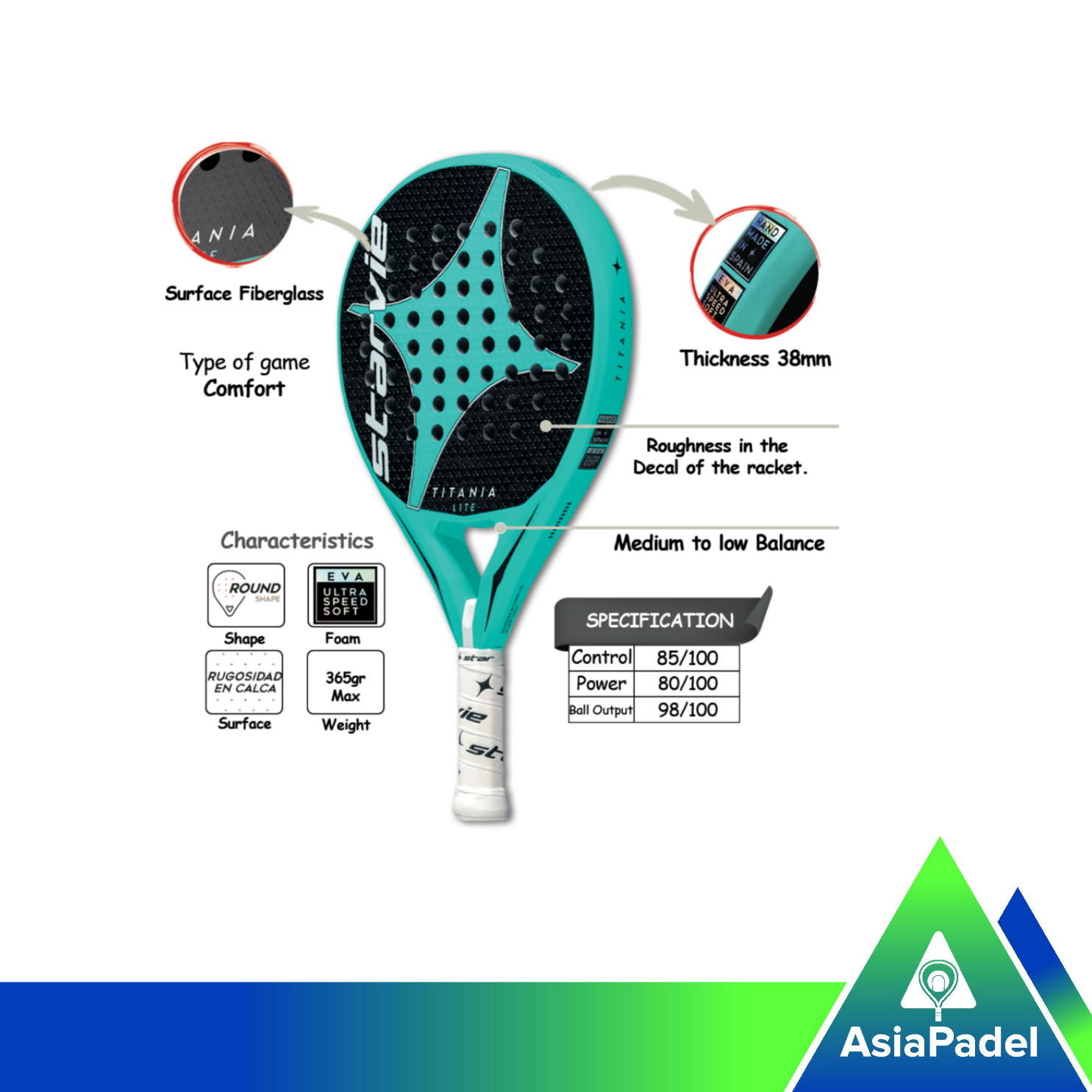 StarVie Nyra raket padel round shape yang dirancang khusus untuk pemula yang membutuhkan kontrol tinggi dan manuver cepat. Menggunakan permukaan X-Glass Tech berbahan fiberglass elastis, raket ini memberikan respons lembut dan toleransi pukulan yang tinggi. Inti S-EVA Flex memberi rasa nyaman dan stabil saat contact, sedangkan teknologi Advance Core membantu meredam getaran untuk presisi lebih baik. Permukaan Spin Boost Tech meningkatkan kemampuan spin, dan struktur T-Carbon memperkuat frame tanpa menambah beban. Sangat ideal untuk pemain baru yang ingin berkembang cepat dengan raket yang ringan, stabil, dan mudah dikendalikan.